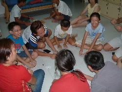 Family Dae was organised by ACJC. Hmm...a few project groups gathered there...Oh btw, its my first time there...the sch is very big! They got running track, tennis courts, swimming pool...a super gym! and last but not least a pool table for recreation activity! WoW~ Even the badminton hall is air-conditioned sia! Ok ok back to the topic...We played captain's ball, sing-along session, played musical tables and art and craft...The activites were very well-organised by the students...and was a successful one ya...We took alot of pics too for membrance...hee...